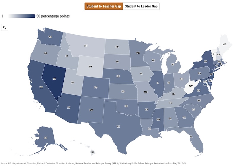 View the rest of the data included in the map, which also measures diversity gaps between students of color and school leadership.